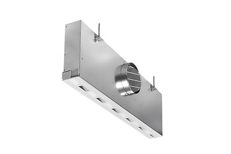 - Stable single jets with alternating inclined discharge, or one-sided single jets at half the volume flow rate, for all ceilings