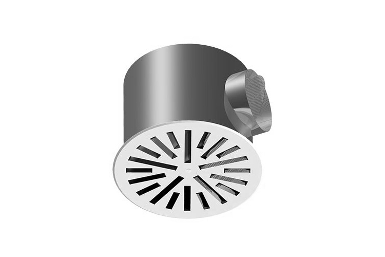 - Circular air outlet element with circular connection box for exposed mounting or with cubic connection box for installation flush with ceiling